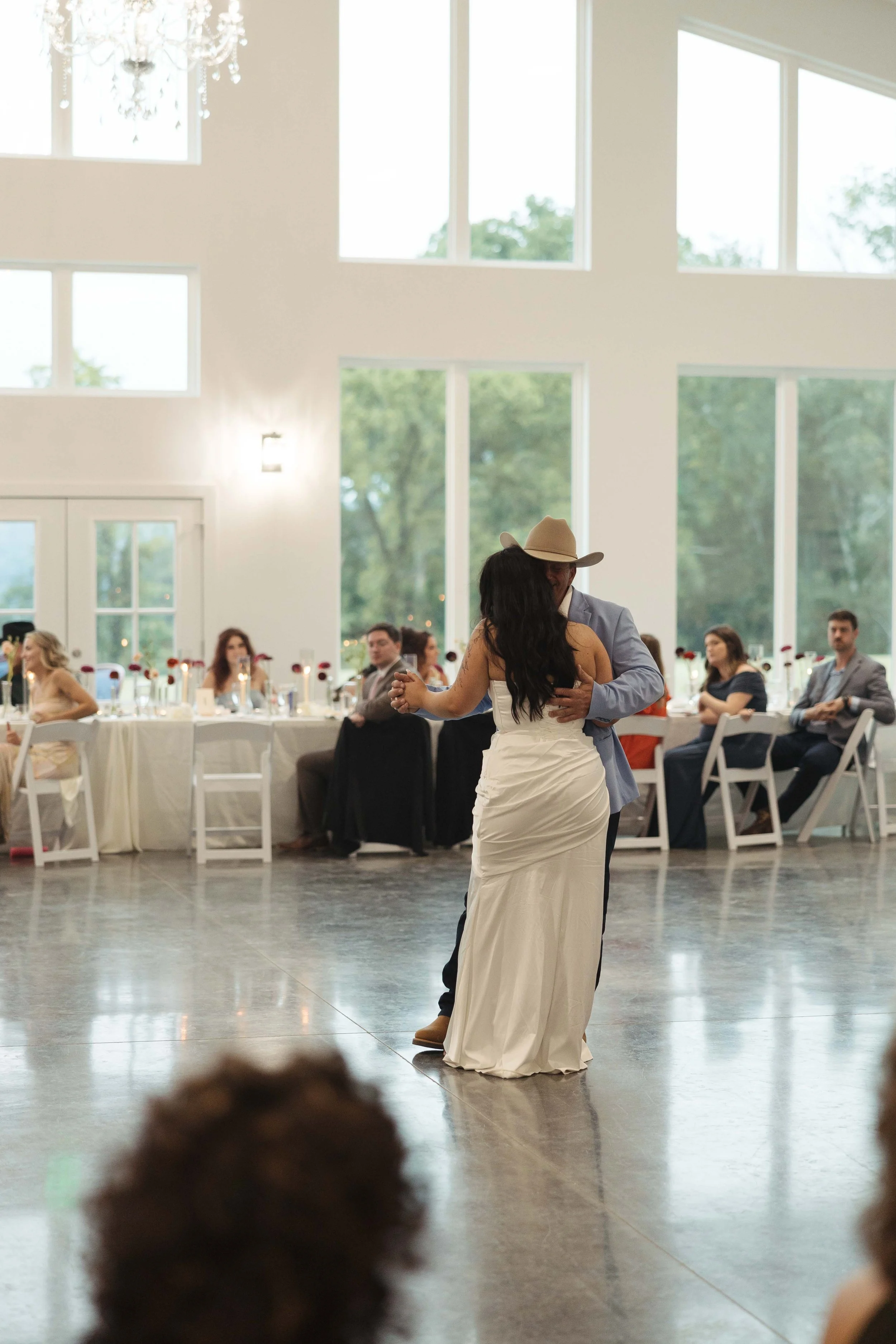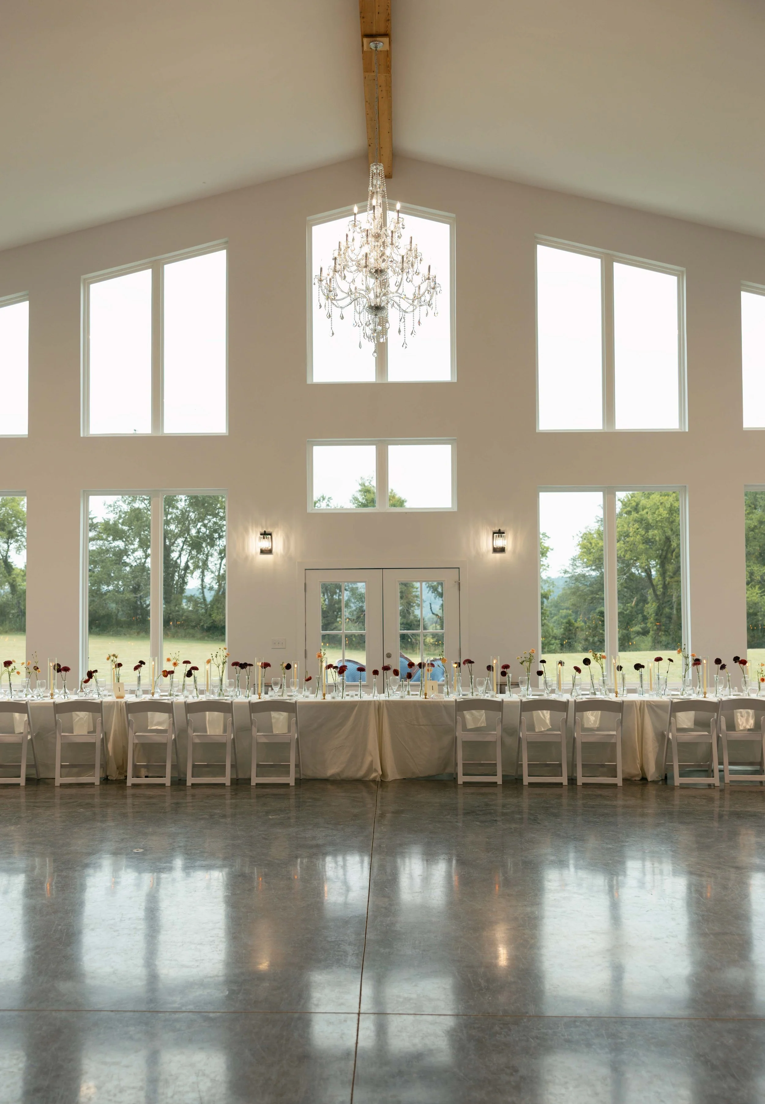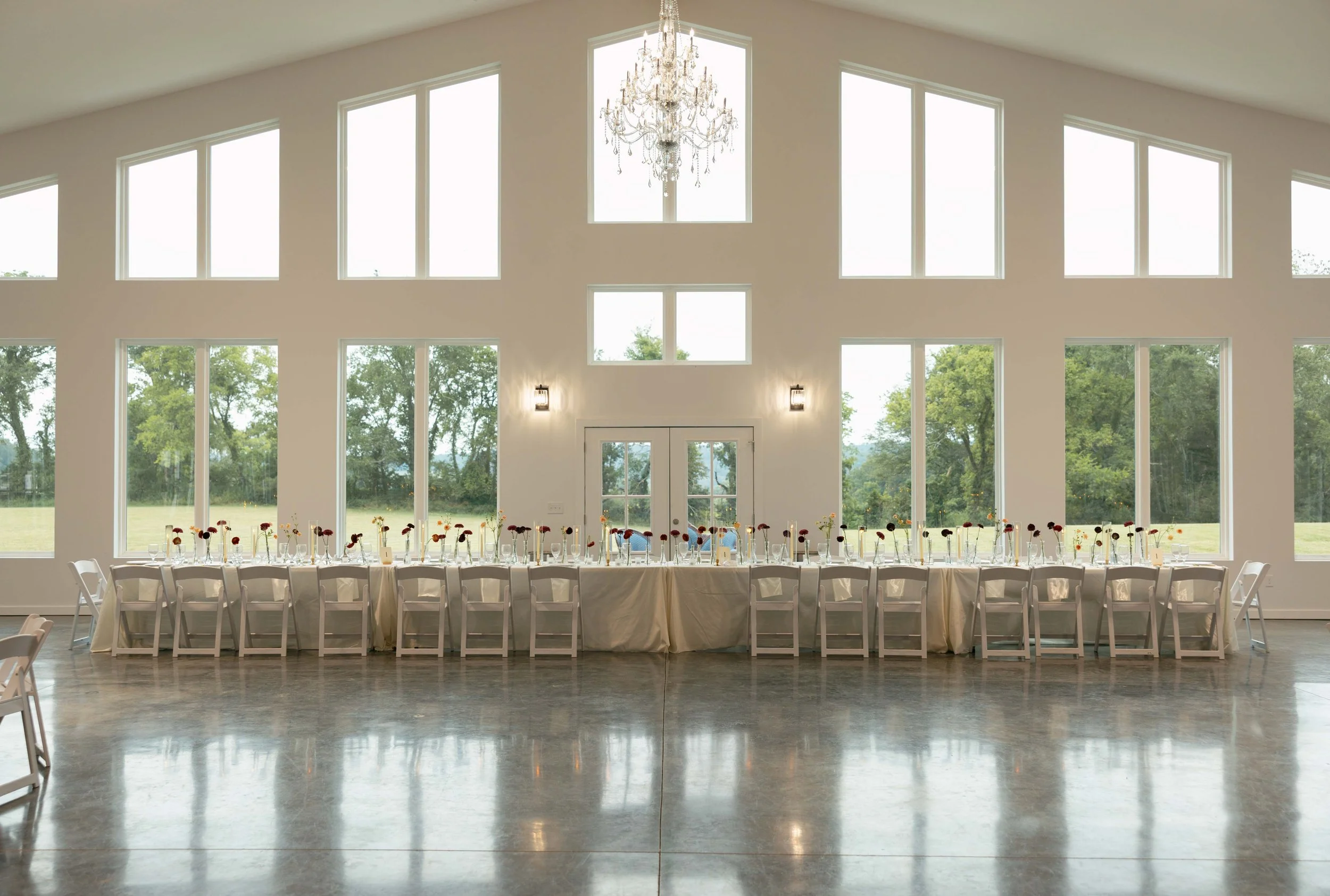 If you have fallen in love with our back wall of windows like we have then a quick room flip during cocktail hour can turn our back room from ceremony to reception as well.