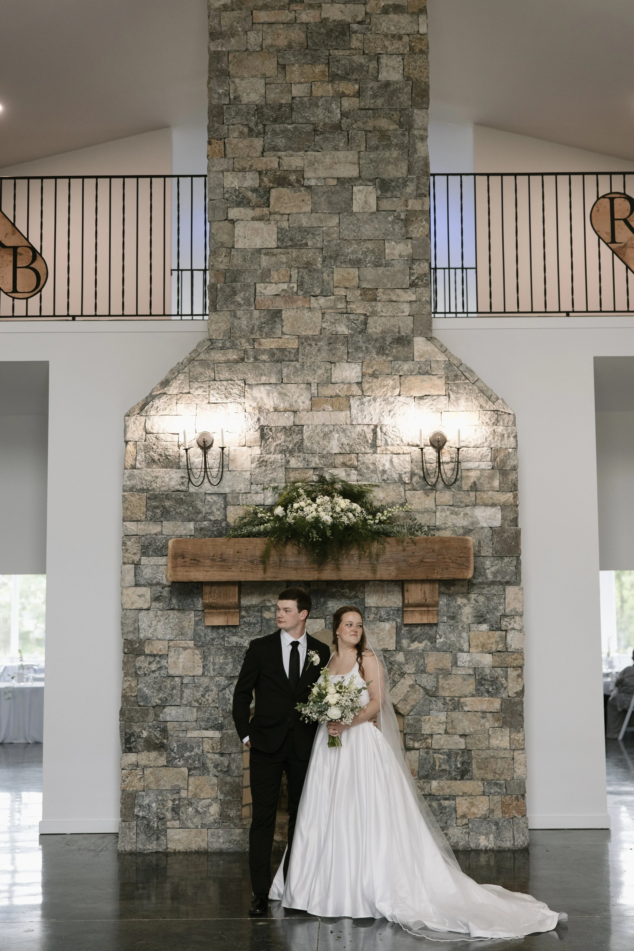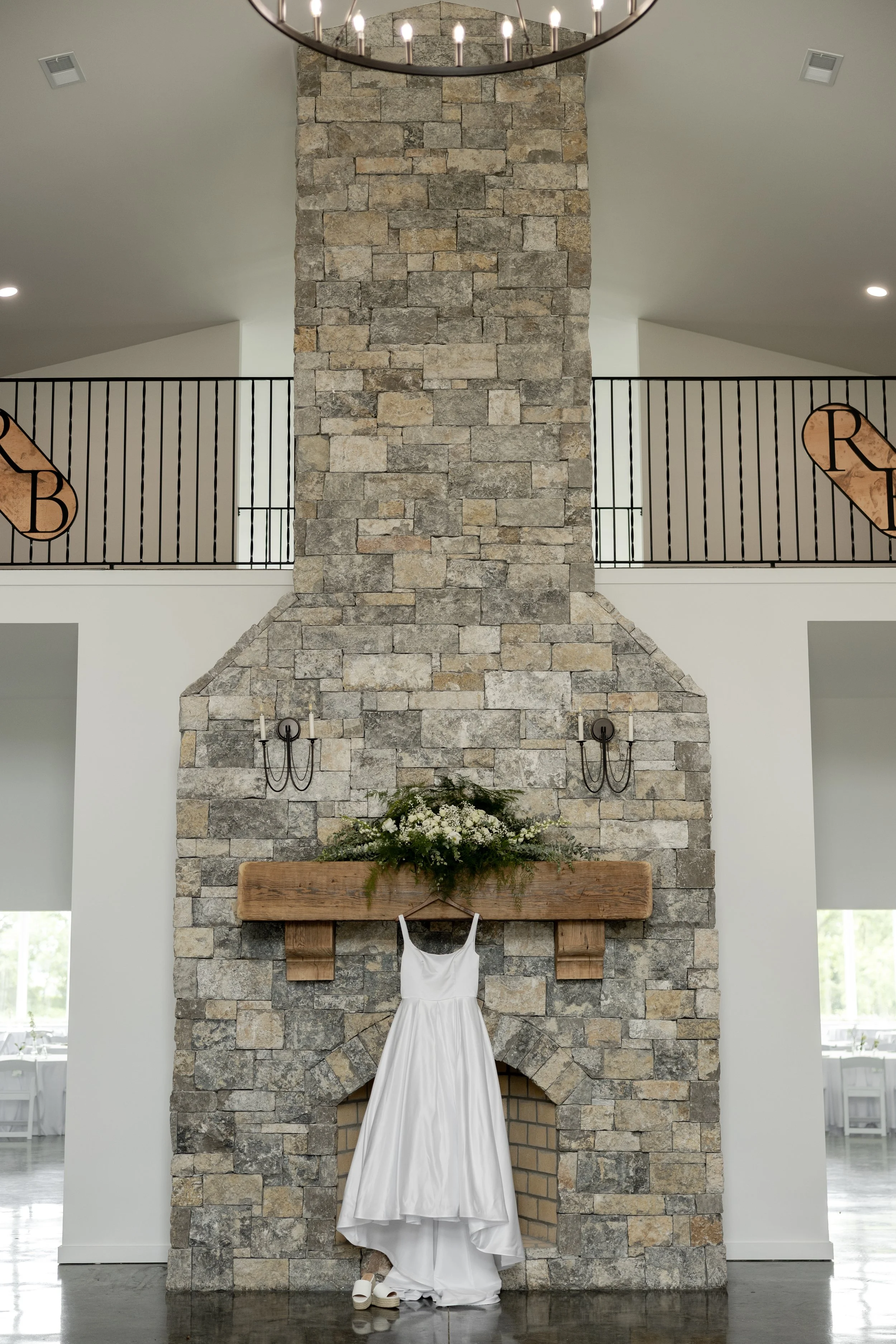 Our front room with the rock fireplace makes for a cozy ceremony location. This location does have a capacity limit of 100 persons.